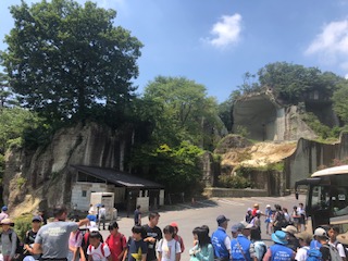 石の里「大谷」の地下採掘場跡が公開されている大谷資料館に到着しました。クラス写真を撮影してから地下30mに広がる神秘の巨大空間に向かいます。