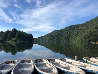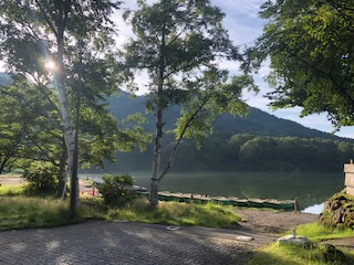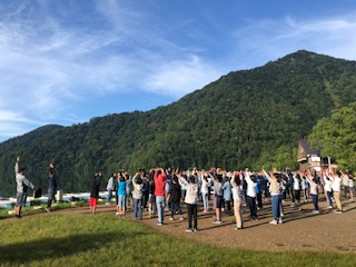 8月7日(水) 6:25 湖畔での朝会(6年)
