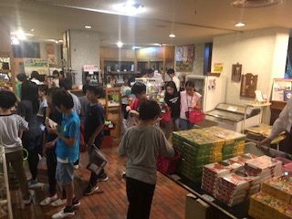 お風呂タイムと組み合わせてクラスごとにお土産タイムを設定しました。大切なお土産ですから、じっくり選ぶ姿が印象的でした。