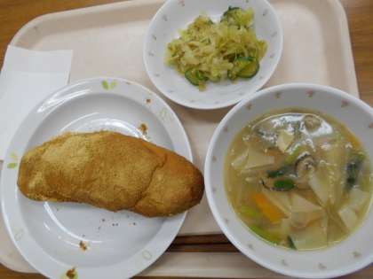 きなこ揚げパン ワンタンスープ 野菜の中華風味 牛乳