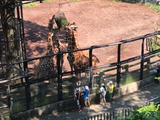 フラミンゴの前を通り、アフリカ園の見学です。はやし広場に荷物を置いてから班活動のスタートです。キリンの食事を近くで見ることができました。