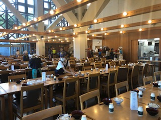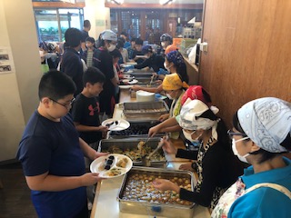 食事係は朝会後すぐに食堂で配膳準備に取りかかります。おかげでスムーズに配膳が進んでいます。