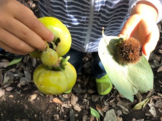 1年生が里山でネイチャーゲームを楽しみました。2学級合同でたっぷり2時間分活動に没頭しました。