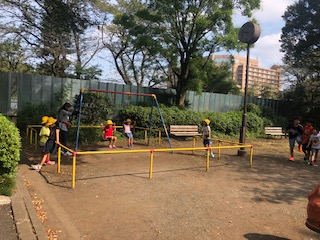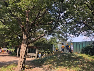 大蔵運動公園のアスレチックでたっぷり遊び、そろそろ汽車ぽっぽ公園に出発です。