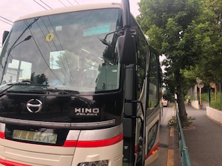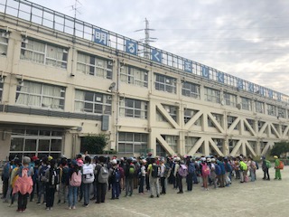 4年生がSDGs秩父自然体験学習に出発です。埼玉県の県民の森に向かいます。バス6台に分乗して出かけます。