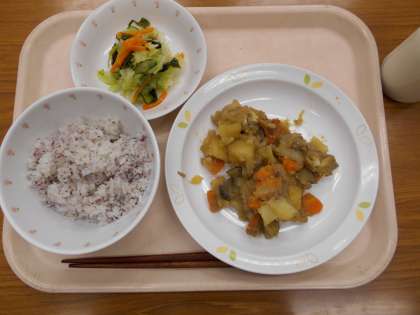 ゆかりごはん 五目うまに 野菜の甘酢かけ 牛乳