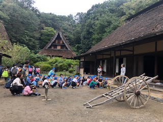 旧佐々木家住宅で大八車の体験が始まりました。まずは説明をうかがいます。