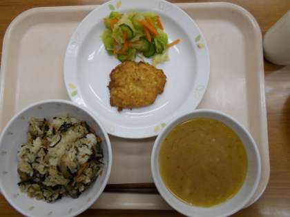 ひじきごはん 豆腐のナゲット そくせき漬け 大根のみそ汁 牛乳