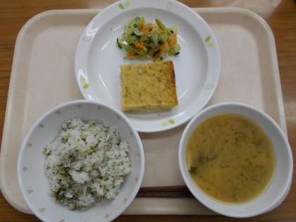 かおりごはん 切干大根の卵焼き 野菜のこぶちゃ和え 味噌汁 牛乳