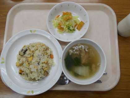チャーハン パリパリサラダ 中華スープ 牛乳