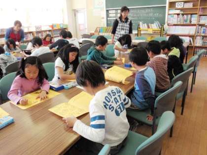 4月は年度の初めなので、図書室の使い方や本の配置、借り方などのオリエンテーションがありました。図書ボランティアの皆さんの丁寧な説明を聞ききました。