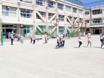 今年度初めての避難訓練でした。ところが、訓練予定時間の直前に地震が本当に発生しました。副校長先生の放送の指示をよく聞き、机の下にすぐに入るなど安全な行動がとれました。予定では火災の想定でしたが、そのまま校庭へ1次避難をしました。子どもたちは、先生の指示に従い整然と避難することができました。