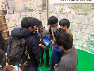タブレットでプレゼンテーションをした後に、活動の写真や新聞記事、クラスでの話し合いや探究活動の説明をしている様子です。自分の取組の説明だけでなく、質問に対応して他のクラスや学年の活動をとうとうと語る姿がありました。