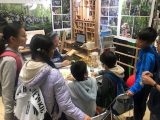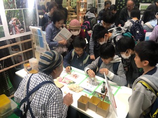 近くのブースは明正小の子供たちで相変わらず大盛況です。担当の方が親切で丁寧に説明してくださり楽しい体験ができて、大人も子供も笑顔でいっぱいです。