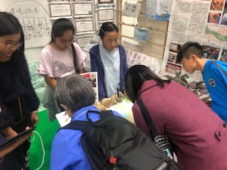 熱心に聞いてくださる方々が多いことが子供たちの気持ちを一層高めており、充実した発信と交流が続いています。14:10の集合時刻が近付いて来ていることに気付きながらも、もう少し、あと少し、との思いが強いようです。