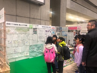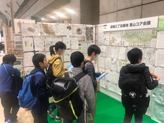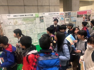 一般入場は10:00なのですが明正小は出展者なので先に入場ができました。まだどのブースも準備作業をしています。まずは明正小のブースの場所を確認しました。昨年度も参加の経験があるだけに、今年の掲示内容を興味深く見ている様子が大変印象的でした。