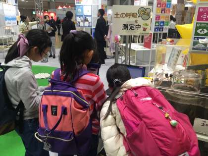 どのブースでもエコスタディノートを開いて学びを記録している姿に出会います。SDGsとのつながりやCO2削減、マイクロプラスチックについてなど、真剣に学んでいることが分かります。