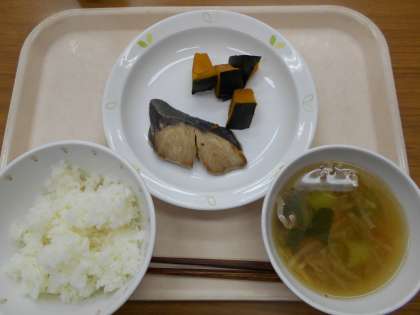 ごはん ぶりのゆうあん焼き かぼちゃのふくめ煮 さわにわん 牛乳