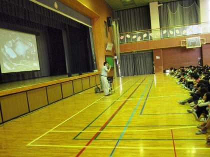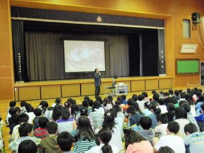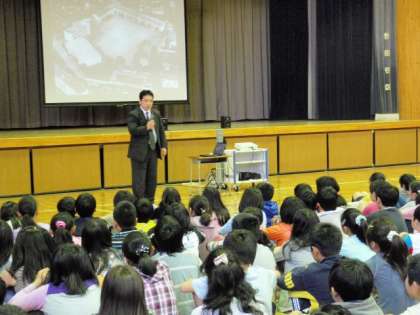 4月28日は明正小学校の開校記念日です。昨年度から、卒業生を学校にお招きし、昔の明正小学校や成城の町の様子についてお話をしていただいています。