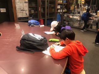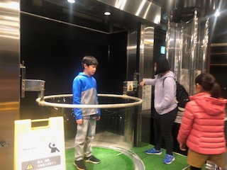5階「ワークス」のコーナーです。大きなシャボン玉や竜巻実験装置などが並ぶこの部屋は、実は展示を作ったり実験を考えたりする部屋だそうです。見学のしおりを開き熱心に記録をとる姿もありました。