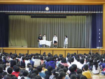 集会委員会による「名シーンあてクイズ」を行いました。集会委員会の児童がアニメやドラマの有名なシーンを再現して、なんの作品かをあてるゲームです。みんなとても盛り上がりました。