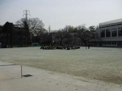 今回の避難訓練は、昼休みに予告なく行いました。突然の緊急放送に戸惑う様子もなく、その場で身をかがめ、静かに校庭に集合することができました。