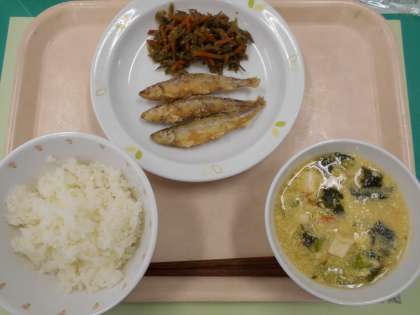 ごはん わかさぎのからあげ きんぴらごぼう かきたま汁 牛乳