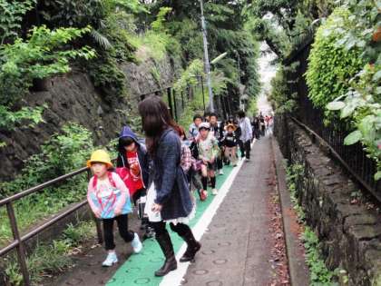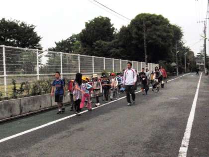 班長さんを先頭に地域班ごとに登校しました。保護者の皆さんも子どもたちと一緒に登校してくださりありがとうございました。