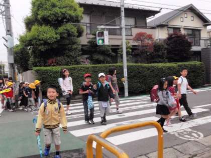 明正小学校の周りは、交通量の多い交差点を渡る場所もたくさんあります。自分の目でしっかりと安全を確認して登下校をするようお声かけください。