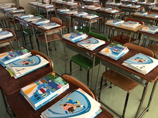 左の写真は各学級置きの運動用具を整えているようすです。今年から3年生以上にはダブルダッチ用の縄も配布します。教室では教科書等の配布準備を進めています。本日、保健だよりをホームページに掲載しますのでご覧ください。