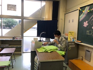 今日は朝9時から学習課題等資料配布と課題提出の受け取りを行いました。一人一人から預かった黄緑色の封筒はそれぞれにズシリとした重みがあります。子どもたちの長時間にわたるがんばりとご家族の応援の「思い」を担任や専科担当が受け取りました。学校の臨時休業が長く続く中での自習には、きっと戸惑いや不安が多くあったことと思います。がんばりも戸惑いも困り感も全部受け止めて、提出された課題の1枚1枚を丁寧に確認させていただきます。提出された課題を確認する時間は、一人一人の子どもと向き合う時間、対話する時間です。大切にしてまいります。