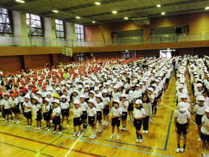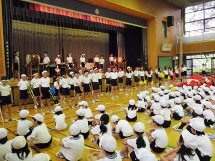 応援の練習も2回目になり、声もよく出るようになってきています。子どもたちの元気な声で雨雲を吹き飛ばしてしまいたいものです。