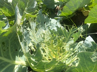3年生の理科の学習です。虫眼鏡を持って校庭の学年花壇のキャベツ畑に出かけました。中央の写真のように、おいしいキャベツを誰かがたくさん食べたあとがレースのようになっていて、とても気になっていました。そして、大発見! モンシロチョウのサナギを見つけました。子どもたちの話では、校舎の壁面でもいくつもサナギを発見したそうです。「キャベツの葉よりもかたくて頑丈で安心なのかなあ」「はるばる畑から校舎まで幼虫が移動したってすごいね」図鑑でも調べられるけれど、学校で直接本物の観察ができることの大切さをしみじみ感じたひとときでした。