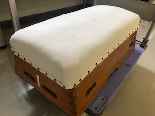 跳び箱のリペアセットを地域の方から2組寄贈いただきました。かなり痛みが進んで使用できない跳び箱がありましたので活用させていただきました。用務主事の作業を経て、しっかりとした1段目が完成しました。大切に使わせていただきます。