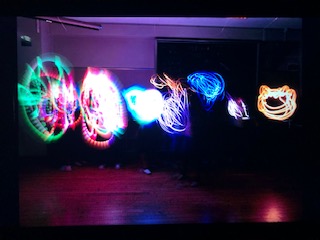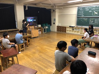 右の2枚の写真は、6月16日にもご紹介した6年図画工作「ライティング ディスタンス ダンシング ドローイング(光のクレヨン)」の今日の学級のようすです。パフォーマンスを楽しみ、級友の活動を鑑賞した後の振り返りの場面です。