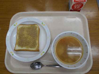セサミトースト ミネストローネ 牛乳