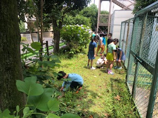 生活科「めざせ生き物はかせ」では虫かごを手に、西校舎裏を探検しています。子どもたちが見つけて自慢げに見せてくれるバッタの大きさが、心なしか大きくなってきたように感じます。