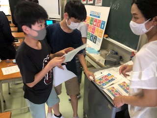 昼休みに、児童会の各委員会委員長と副委員長が”Touch the World” の教室に集合して来週のオンライン児童集会の打ち合わせをしました。例年通りの「全校児童が体育館に集合する児童集会」の形態では実施が難しくても、オンラインなら各委員会からのメッセージを全クラスに届けることができます。しなやかに、したたかに、柔軟に、大切なことをしっかりと実現していく、そんなたくましさ、頼もしさが、明正小で動き出しています。写真は各委員会の役割をSDGsで表現するために特別活動の担当教員と意見交換している場面です。