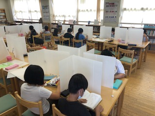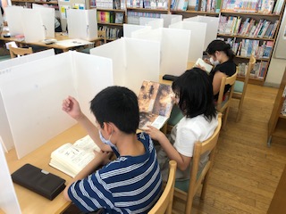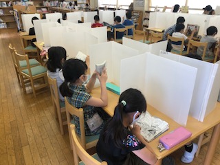 図書室の机は対面式なので、以前は貸し出しのために来室し、読書は各教室で行っていたのです。
