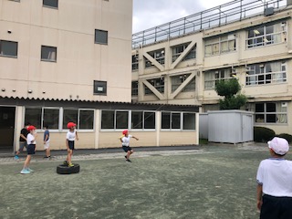 「投げるくん」には昨年も一昨年も親しんできているので、休み時間には人気のコーナーになっています。屋上の柵にまで届き「カン!」とよい音を立ててる達人もいます。