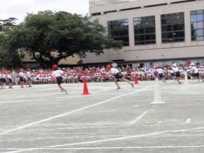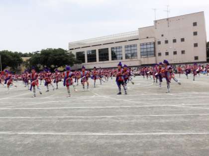 運動会で4年といえばエイサーです。沖縄の民族衣装に身を包み、太鼓の音を響かせる演技は特筆ものです。子どもたちが誇らしげに踊る姿が印象的でした。