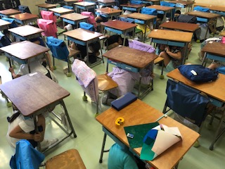 本日は引き渡し訓練の予定を中止して校内での避難訓練を実施しました。写真は左から6年、4年、1年の避難訓練事後指導のようすです。
