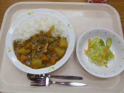 チキンカレーライス アスパラガスのサラダ 牛乳