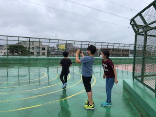次は,校庭や屋上でワカケホンセイインコの取材を続ける4年生のようすです。雨が降っている日は目撃情報が多いので、なんとか写真におさめたいと粘り強く努力しています。頻繁に校庭や校舎の上を飛びまわっていて、肉眼なら尾羽のようすまで見ることができます。目撃情報を記録している4年生が教えてくれました。最初に気付いたのは7月10日(金)の5時間目だったそうです。体育館の方の木にとまっていて、その後、ひまわり学級の近くの木に来て、ヒマワリのタネや花がらを食べたそうです。翌日11日(土)も2-3羽を目撃したそうです。