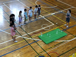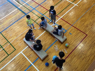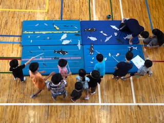 体育館で異学年交流をしているようすです。他にチャンバラコーナーもありました。過密にならないように気配りをしながら、6年生が計画・運営しています。学年全体としての交流でなく、学級単位での交流です。みんなマスクをしていても、満面の笑顔が分かります。困難な状況であっても大事なことを実現するために、様々な課題を協力して解決していく主体的な姿が頼もしいです。