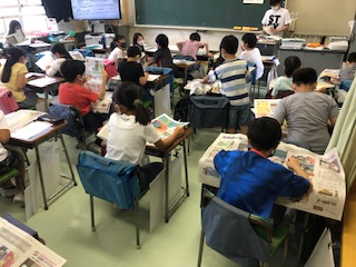 今日は1学期の最後の授業日ですが給食があるので午前中は各学級それぞれの時間をゆとりをもって有効に過ごしています。学級活動でお楽しみ会をしたり夏休み前に地球温暖化や省エネについて改めて考えたり新聞記事に目を通したりなど、様々です。