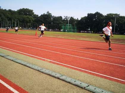 この日は総合運動場で砧中学校の運動会がありました。午後から参観させていただきました。小学生も6年生が連合運動会で毎年走っていますが、一周400メートルのトラックを疾走する中学生の姿は迫力もあり壮観でした。