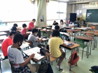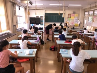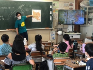 写真は左と中央が3年、右が6年の教室のようすです。左の写真の教室では世田谷区の学習を復習しています。