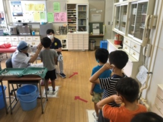 左の写真のように本日から保健室では学校耳鼻科医の先生による耳鼻科検診が始まりました。
