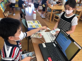 図書室の活用も盛んです。来室前後の手洗いは引き続き大事にしていきます。1学期は見合わせていた図書委員会児童による貸し出し等の対応を再開しました。バーコードをピピッと読み取る作業は委員会児童にとって魅力的な仕事の一つのようです。